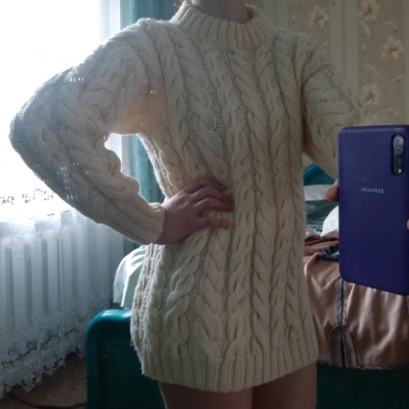 Новое качественное вязаное платье или туника, глядя на рост. Вязкая плотная. Одет на размер Л. Проте лучше на М, даже S.
