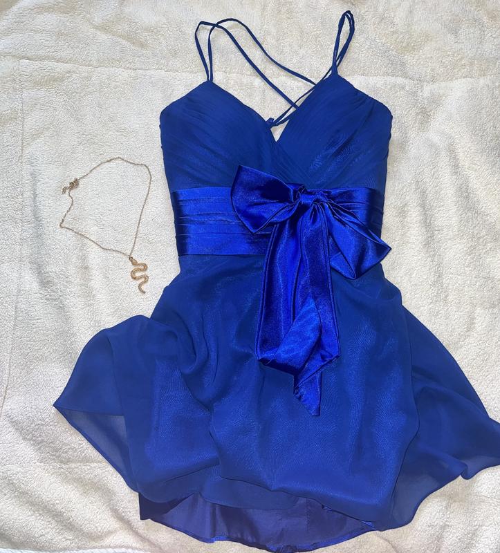 Платье имеет трендовый, синий цвет. Стан - идеальный. Подойдет к росту 164.