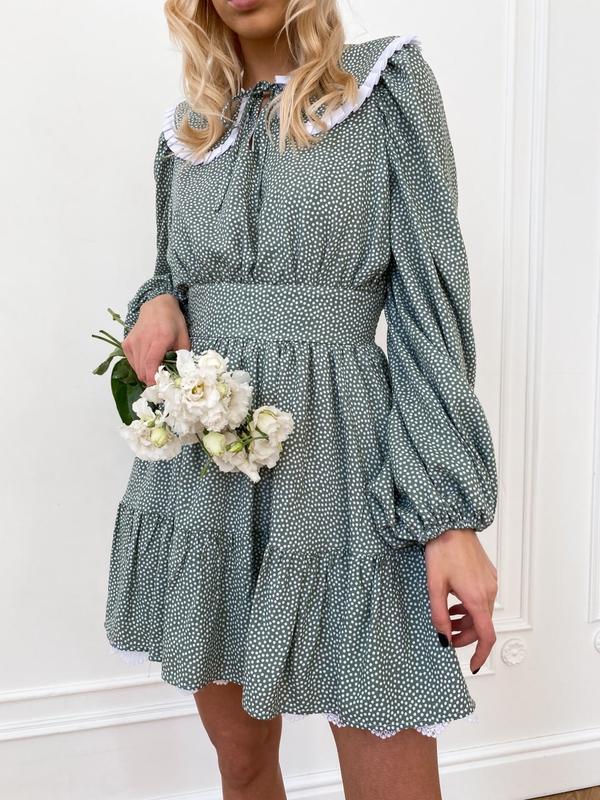 Арт 434 Сукня Няшна, мила, кокетлива, мила сукня Пышная юбка, широкий рукав, трендовый воротник, подюбник с кружевом. Платье застегивается на боку на молнию, талия на спинке. Тканина: атлас-шовк Есть разные цвета Подкладка: шифон Размер: one size (42-46)