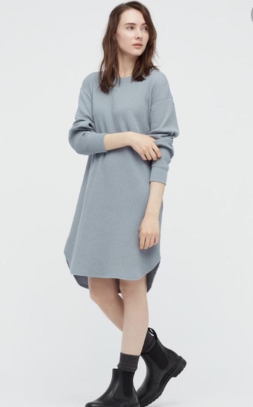 Плаття з хлопка , сірого кольору , фірми Uniqlo. Вкатано розмір хс, може бути на с-ку. Плаття нове , примірялося без нарікань та погрішностей, гарне та якісне .Крій вільнуватий , як на моделькі. Півобхват під мишки-47 см Довжена по спинці-88 см Плечові шви-47см/приспущені Район бедр-49 см Рукав від шва плечового -51 см
