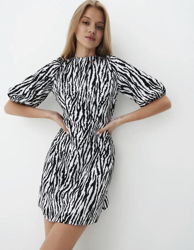 В жизни на рост 169 глубже, чем на фото! Есть мое фото на теле) Платье с анималистичным принтом и объемными рукавами! • длина мини • шнуровка на спине • облегающий крой • застежка на потайную молнию • еластична резинка Хорошо подойдет на любой праздник!