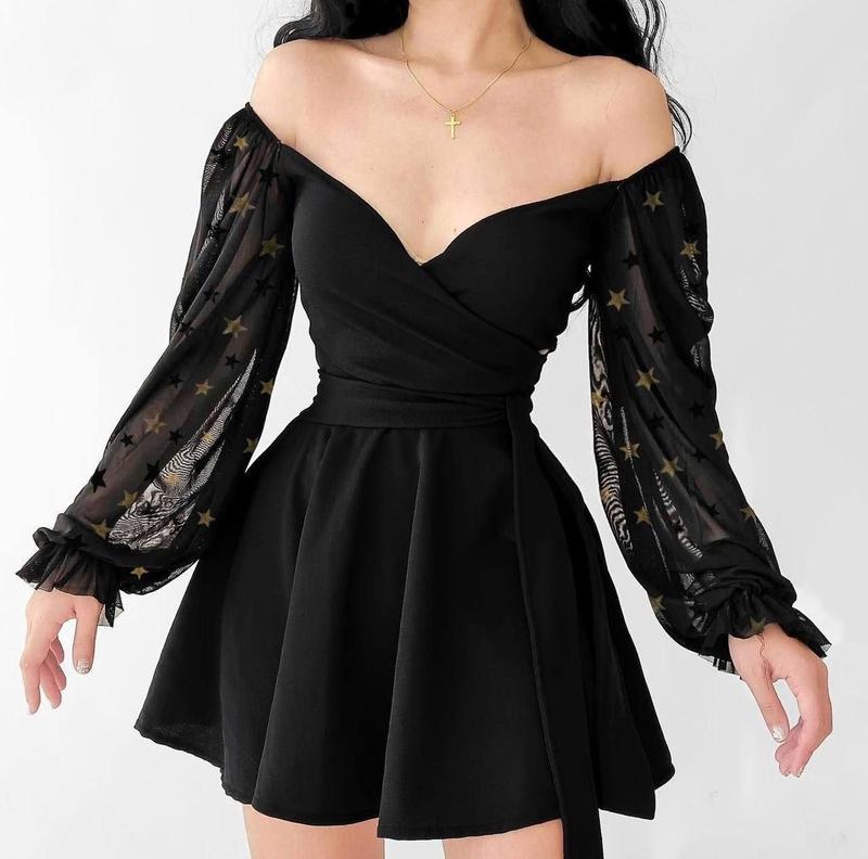 Очень изысканное платье с прозрачными рукавами с звездочками придаст праздничное настроение и привлекут взгляды 💔 ▪️Сукня Арт 424 ▫️Цвета: черный ▫️Размеры: универсальный (42-46) ▫️Ткань: креп-дайвинг+фатин Цена : 650 грн