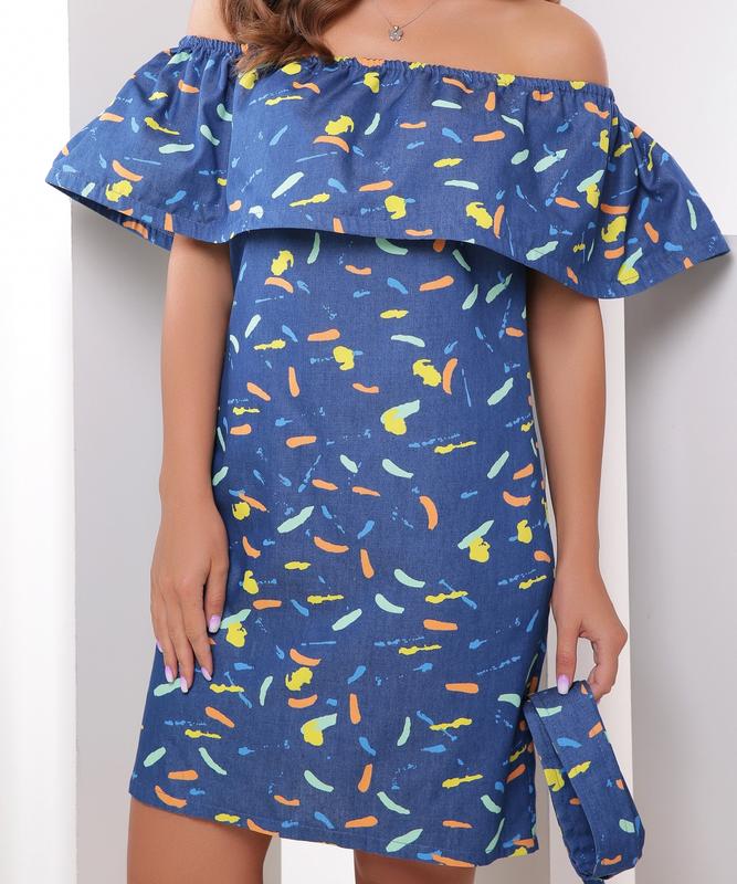 Легка та повітряна сукня. Волан може регулюватися гумкою. У цій сукні ви виглядатимете дуже ніжно і привабливо. У комплект входить пояс у колір сукні. Колір: джинси. Склад: 100% бавовна. Виміри р42-44: довжина - 77, ширина під пахвами - 45, ширина в талії - 44, ширина в області стегон - 48-49 Виміри р46-48