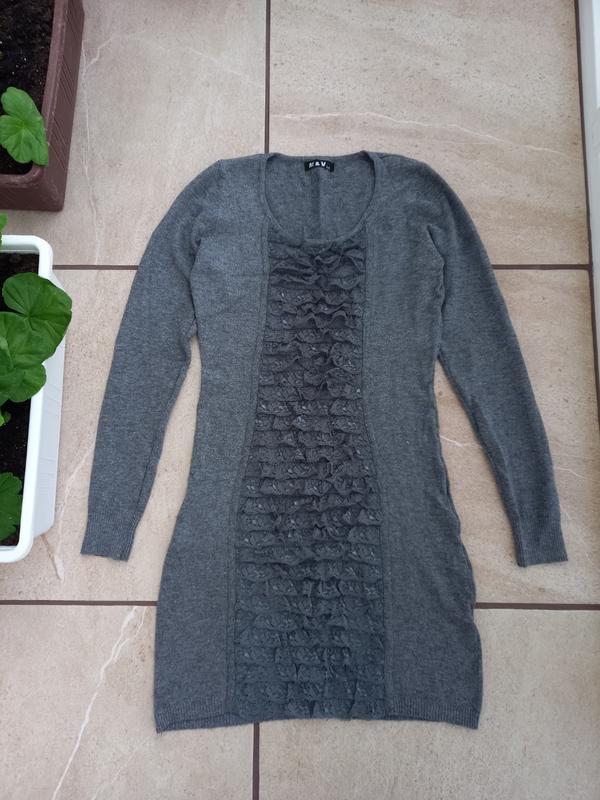 Плаття сіре міні светр сукня шерстяна Розмір : десь на S/М. Заміри : Довжина виробу : 80 см. Груди : 38 см. Плечі : 31 см. Рукав : 47-61 см. Стан : дуже хороший. Додатково : колір сірий. Доставка : Новою поштою (пріорітетно) або Укрпоштою за ваш рахунок. Оплата : через сервіс або на карточку. Хорошого Вам дня та вдалих покупок :) P.S. Бери більше, плати менше!
