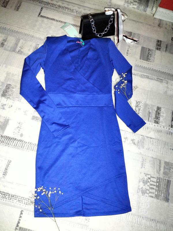Платье с рукавами V-образным вырезом с наплечниками пуш-ап ✓нова ✓цвет - синий💙 ✓размер 42-44 ОГ 80-88 ОТ 66-74 ОБ 76- 84 Длина 87 Длина рукава 62📏