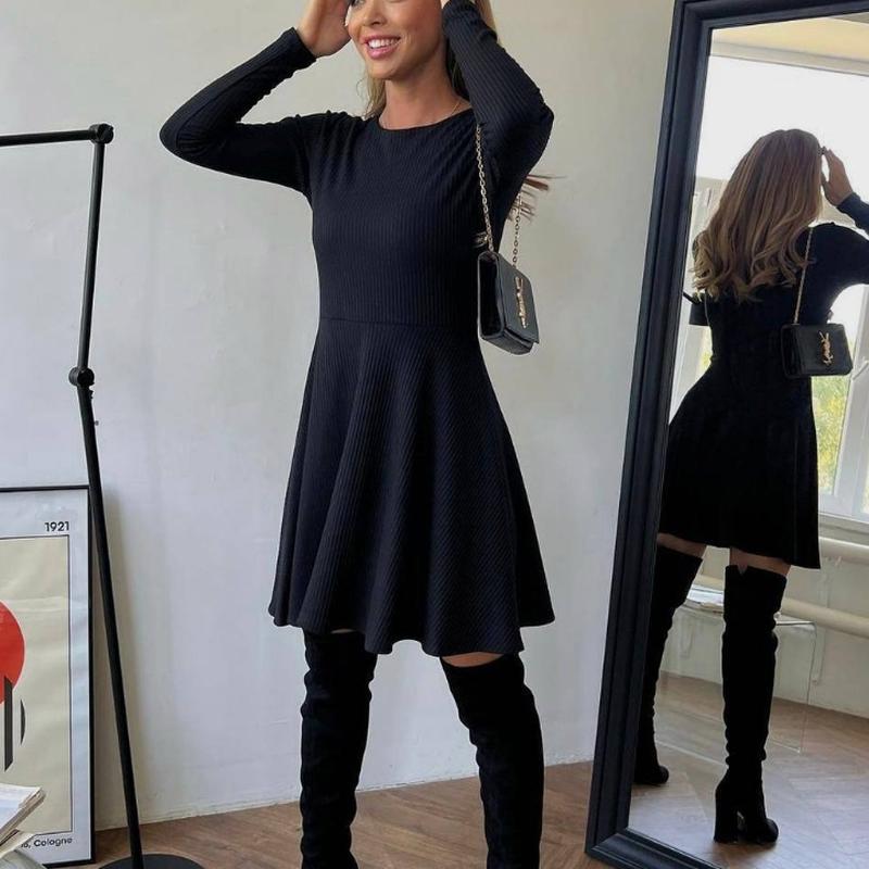 #Платье Артикул: 905-1373 Цвет: графит и жемчужно серый Размер: универсал 42-46 Материал: рубчик Турция