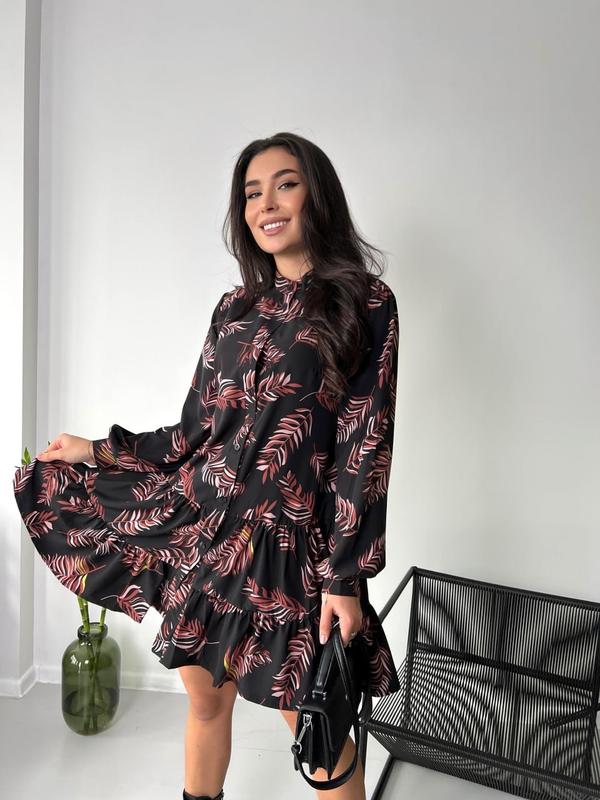 🔘Артикул: RG3591/SV 424 🔘Тканина: софт 🔘Розмір: S, M, L, XL 🔘Колір: чорний Трендова сукня-сорочка вільного крою з воланами. Не продаю безпечною оплатою!