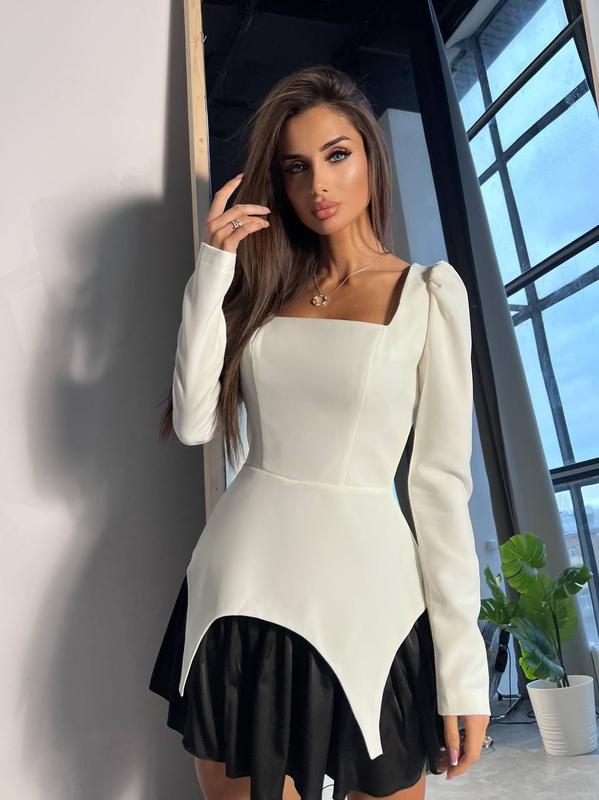 ✔️Хит продажа✔️ Сукня🤍 ☑️Модель 3153 ☑️Тканина костюмка ☑️Цвета черно-белый, бело черный ☑️Размеры 42-44; 46-48 Это ВАУ🥰 это платье можно аккуратно сочетать с различными образами, юбка отдельно, верх можно носить как с юбкой так и с брюками❤️