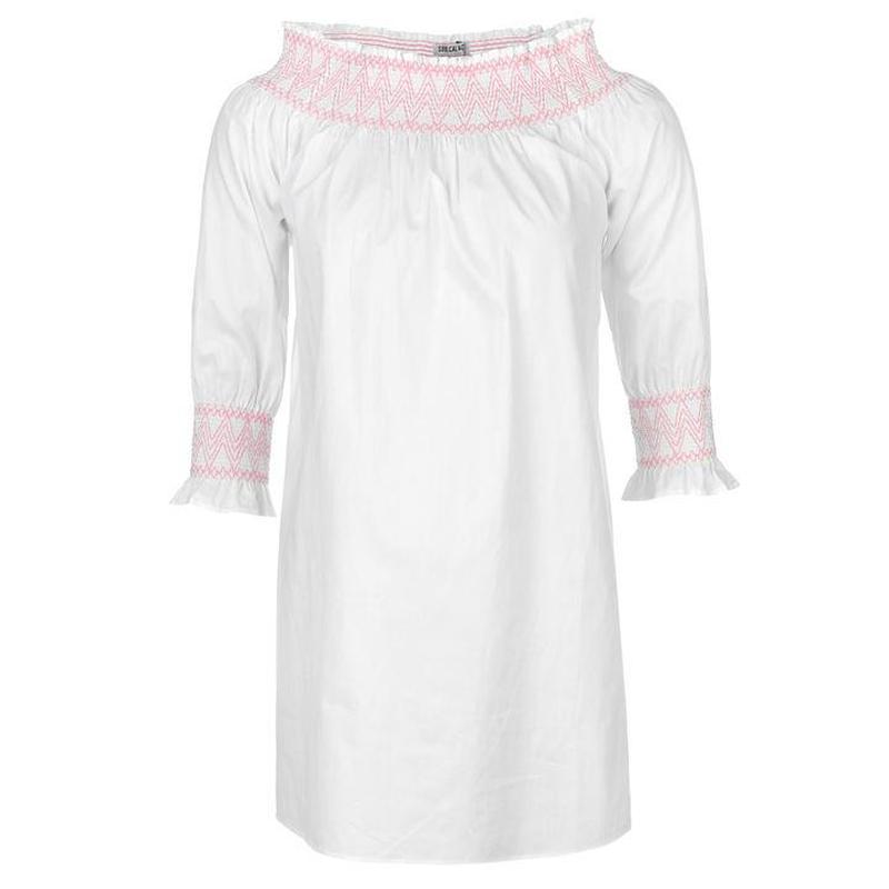 Нежное белое платье то, что нужно на лето Короткое, рукав три четверти , вольный крой Вышивка машинная на плечах и на рукавчиках Соответствует размеру . Размер англ М Оплата на карту 100%