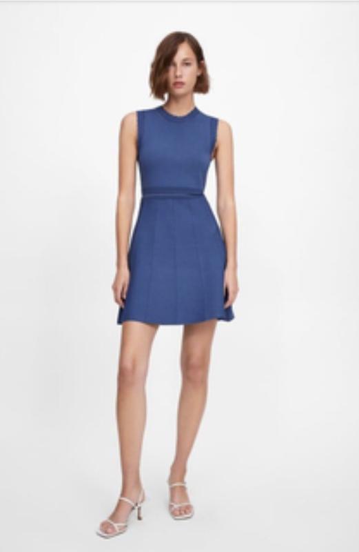 Это очаровательное вязаное платье от Zara темно-синего цвета с узорными и текстурированными проймами и вырезом. Тонкая, слегка заметная линия талии и классическая юбка А-силуэта. Еластична тканина, але цупка! В отличном состоянии, размер указан М, можно и на С