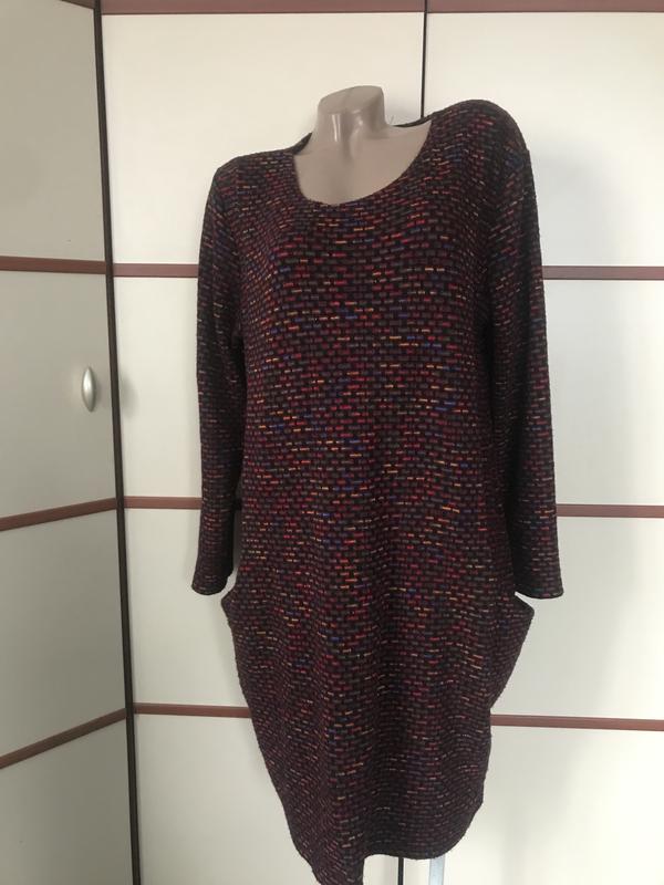 Красиве тепленьке плаття ,розмір 2XL-3XL,довжина 90см,довжина рукава 56см,пог 57см,пот 57см,поб 67см,по боках кишені,добре тягнеться,бірки із складом немає.