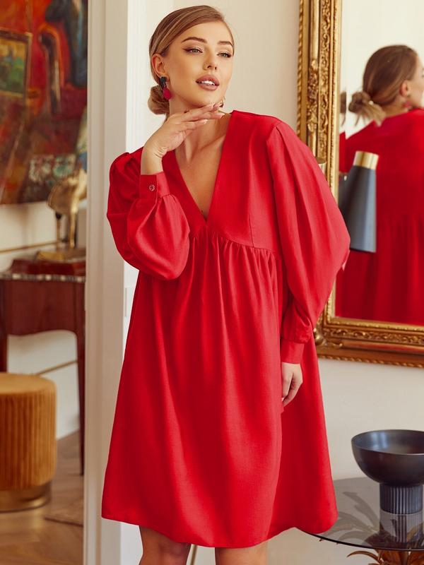 Льняна сукня вільного крою в оверсайз стилі. Модель з V-вирізом та відрізною лінією по грудях. Об'ємні рукави із манжетами. ❗❗Ручне прання при температурі води до 30 ° C. Виріб не терти. Віджимати акуратно, без перекручування Розмір:44,46,48,50 довжина виробу – 93см довжина рукава (від плечового шва) – 61см Склад: 95% льон, 5% поліестер Колір: зелений, червоний, жовтий, малиновий Матеріал: Льон Сезон: літо , тепла осінь/весна арт60906