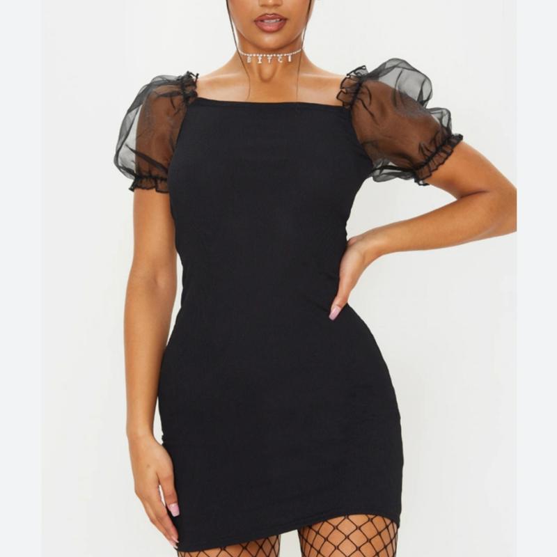 Платье короткое базовое черное на плечо с домин объемный