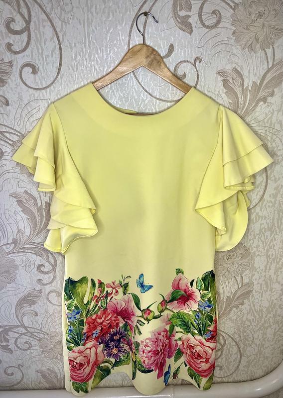 Літня гарна сукня З рюшами на рукавах Квітковий принт З блискавкою на спині Має кармани на рівні бедер з обох сторін Розмір 48-50 Заміри: Обхват грудей 98 Обхват бедер 104 Довжина 95 Довжина рукава 20