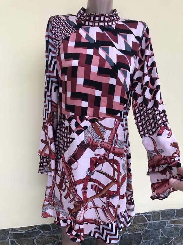 Яркое, красивое платье. Крой свободный, размер М, длинна 92см, грудь 90-94см, талия 80-84см, бедра 95-100см, рукав от шеи 74см. практически новое