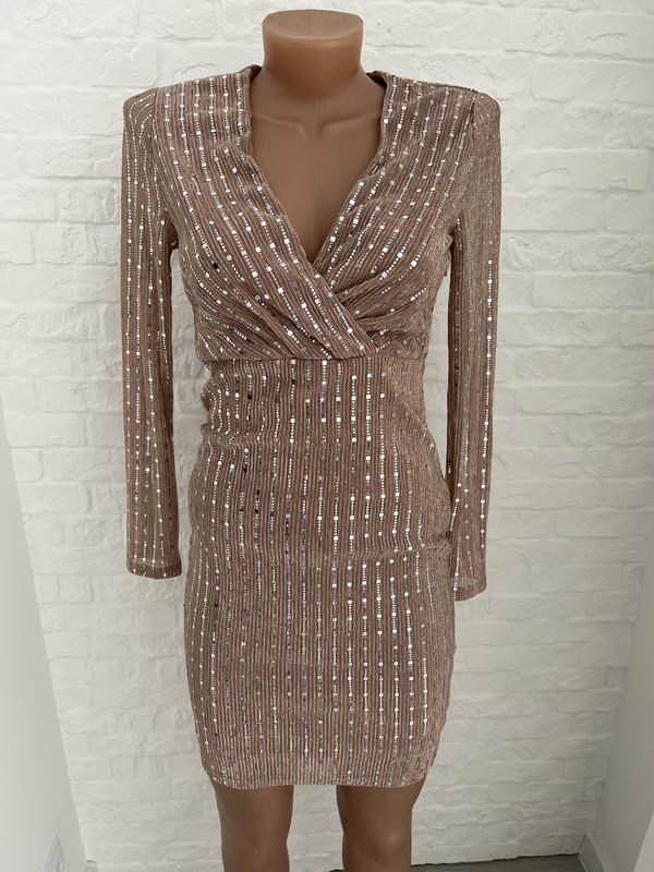 Стан ідеальний, колір бежевий, розмір 6, ширина в плечах 32см, ПОГ 34см, талія 30см, довжина рукава 57см, довжина плаття 87см