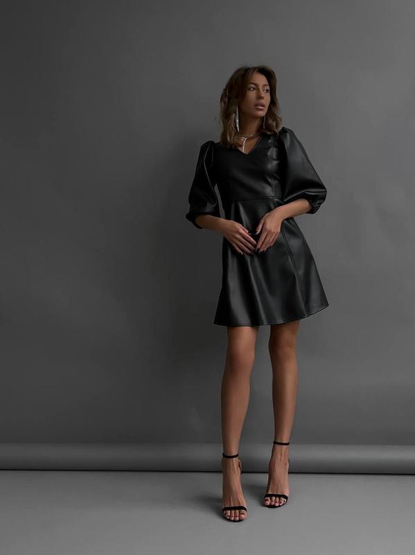 Новинка Сукня мод. ru 641 ткань :теко кожа размеры: 42-44, 46-48 цвет: черный ЦИНА 659грн🏷