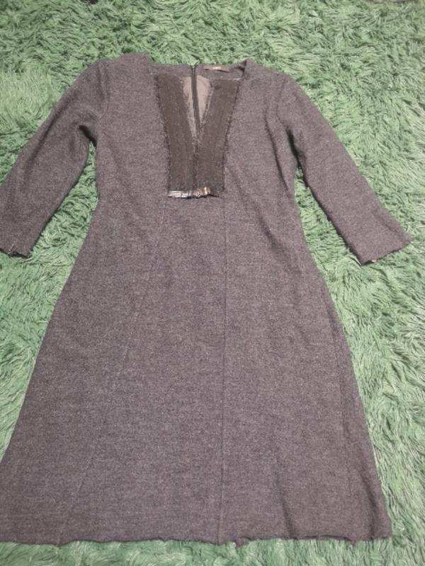 Номерное брендовое платье из валяной шерсти графитового цвета. Итальянский 46, европейский 38/40. Производитель - Италия (Венеция) Трапецивидный силуэт. Рукав 3/4, замочек с логотипом. Грудная часть имеет вставку, внизу которой декоративный ремешок. По спинке молния. Подкладка из полиэстера. Нижний край юбки и рукава необработанны. НОГ - 46 НОТ - 42 НОС - 50 Плечи - 40 Длина - 92 Рукав - 46