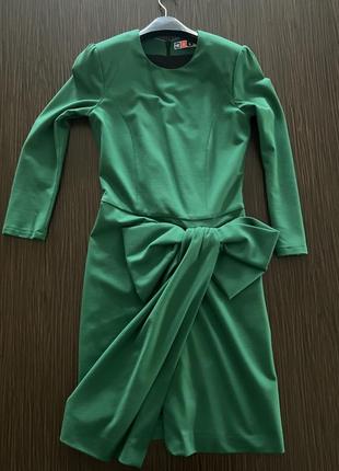 Оригинальна сукня від відомого італійського бренду. В ідеальному стані, насичено зеленого кольору. Нижня частина прикрашена асиметричним бантом і зроблена назапах. Верх простий і класичний. Тканина плотненька, чудово тримає форму. Заміри: