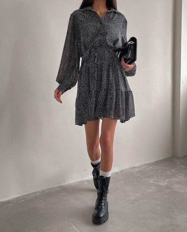 Сукня♥️ Мод 9016.16 Цена 670 грн Размеры 42-44, 46-48 Тканина - софт Цвет черный Нежное и женственное платье в горошек! Спереди платье застегивается на пуговички ♥️ Отличное качество!