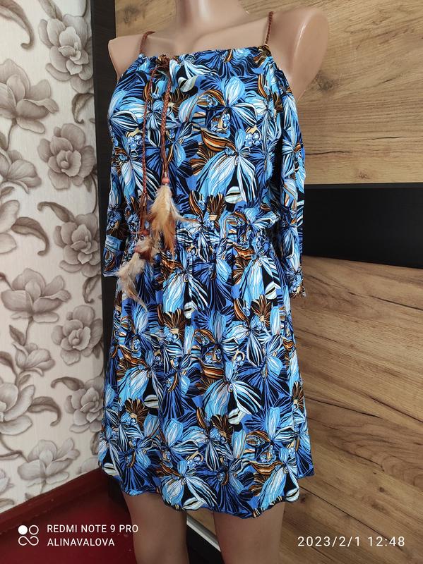 летнее платье, приятное на ощупь ткань, почти новое, на талии резинка,