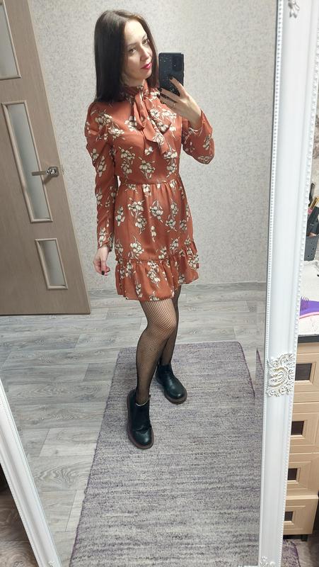 сукня з креп шифону , на змійці сзаду , є галстук пришитий сзаду - при бажанні його можно відпороти і оперезаться по таліїї), йде на розмір 44_46 в ідеальному стані