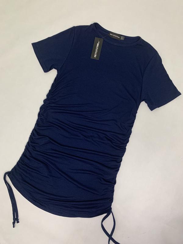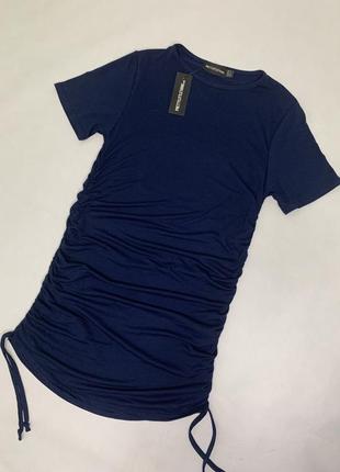 Приталенное платье темно синего цвета, приятная к телу ткань, платье на резинке с обеих сторон