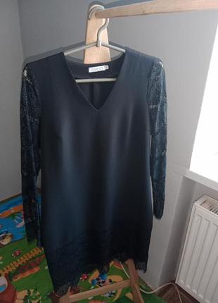 классическое платье черного цвета, в идеальном состоянии, красивое сочетание кружева на рукавах и по низу. если нужно повернуть замеры