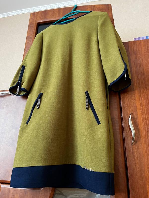 Просто отличное элегантное платье! Красивое сочетание цветов. Рукав 3/4, крой прямой. Платье дорогое и качественное. Материал приятный к телу, в составе есть шерстяная нить. Носила бы, но погладила и тому продаю. Стан очень хорош, лишь есть небольшой нюанс (фото 4) под рукавчиком чуточку укушалась материя, потому что там сбоку замочек застегивается. При носке не заметно совсем. Цвет как на 1 и 2 фото. За дополнительной информацией воспользуйтесь — рад ответьте. Заходите на мою стороночку, разглаживая вещи из собственного гардероба, поскольку стали мне зарисовать. Все вещи качественные и в хорошем состоянии.