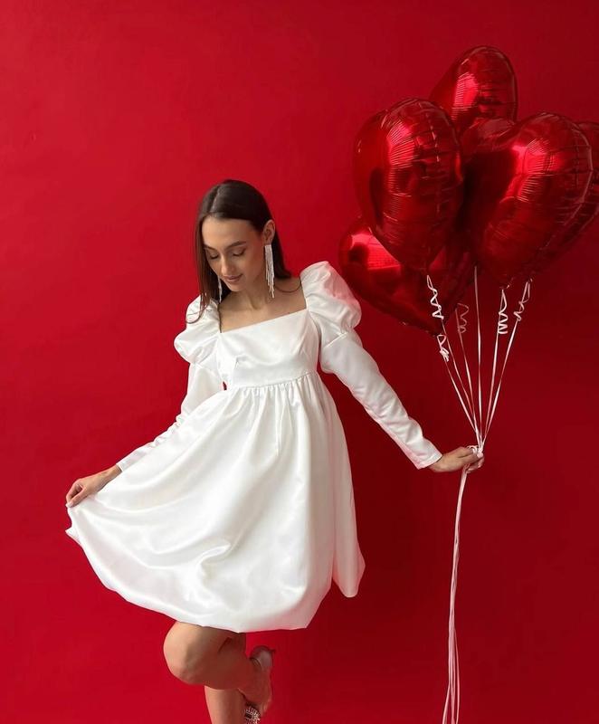 ♥️VALENTINE’S DAY♥️ Красивое платье на праздники😍 Очень женственное и милое. Идет пышное, на подкладке. Перчатки можно спускать. На спинке завязывается. Код 051/32 Тканина: креп костюмка Цвета: белый Размеры: 42-44, 46-48 💵Цена 650 грн