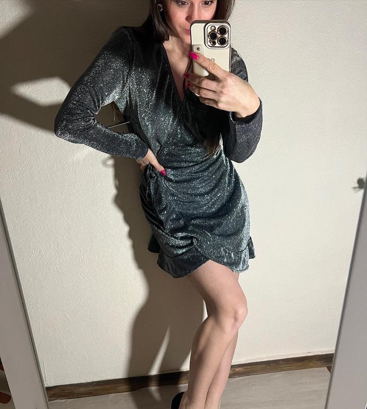 💋 Блестящее серебряное платье на запах Размер: S, Подойдет на s,m Состояние: новый с биркой 🏷️ 600