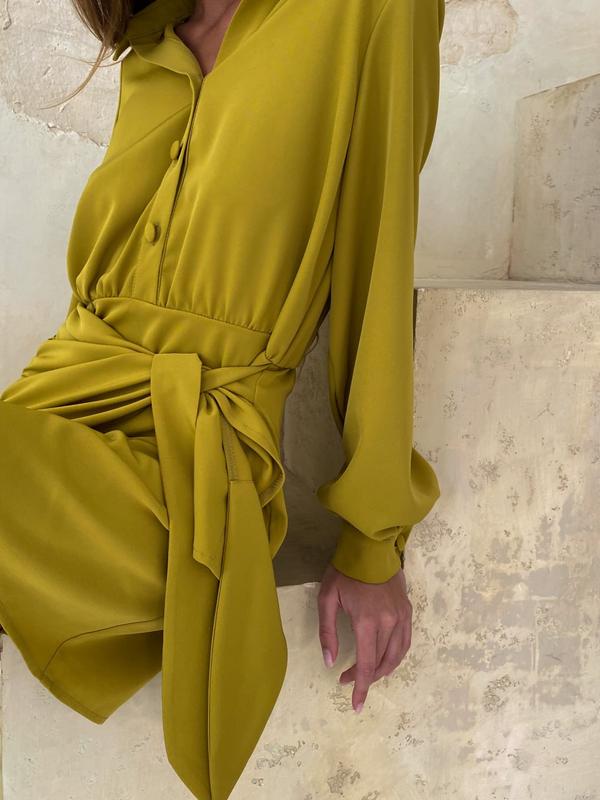 Арт 462 Сукня Stella Сукня сорочкового стилю, спідниця у сукні на запах із зав'язкою Талія на гумці Тканина: поліестер (Cхожий на трохи стислий шовк) Розмір: S, M Колір: чорний, білий, блакитний, синій, гірчиця, беж, корал, лайм