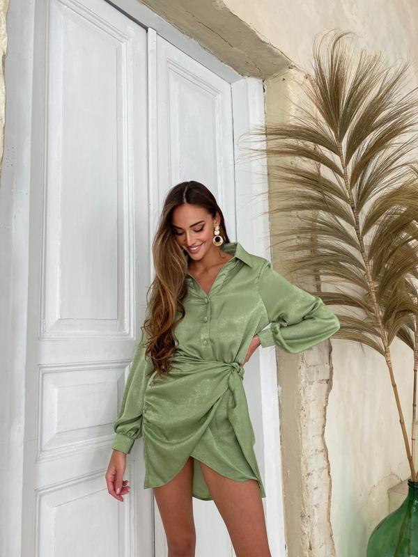 Арт 462 Сукня Stella Сукня сорочкового стилю, спідниця у сукні на запах із зав'язкою Талія на гумці Тканина: поліестер (Cхожий на трохи стислий шовк) Розмір: S, M Колір: чорний, білий, блакитний, синій, гірчиця, беж, корал, лайм