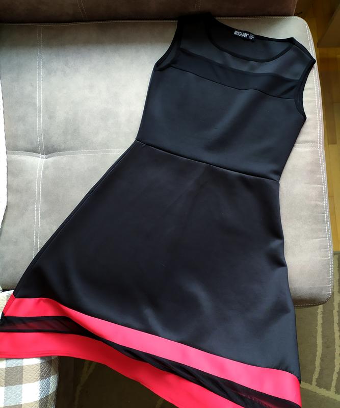 Элегантное платье Miss Look в отличном состоянии. Шикарно облегает и подчеркивает фигуру, ткань эластичная и приятная к телу. Спереди и по низу есть полоски черной сетки, интересный крой юбки - боковые швы длиннее основной длины (см 1 фото) Общая длина по спинке 87 см, длина юбки от талии 50 см, талия 35 см, ширина под проймами 39 см.