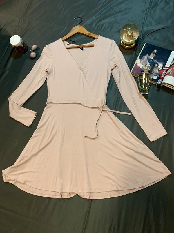 гарне ніжне пудрове плаття на запах розмір S-M стан чудовий