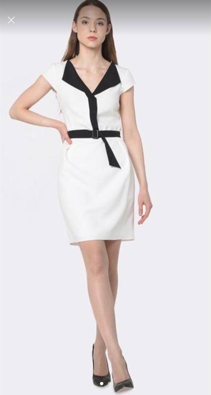 Коктейльное платье CAT ORANGE Состав: 67% вискоза, 30% полиамид, 3% эластан Подкладка: 100% вискоза Платье Cat Orange полуприлегающего силуэта из мягкой плательной ткани белого цвета с добавлением эластана. V-образный вырез горловины с отложным контрастным воротником. Отрезное по талии, с мягкими складками. Линия талии подчеркнута поясом с пряжкой. Застёгивается на молнию по боковому шву. Стрейчевая вискозная подкладка. Размер - 42