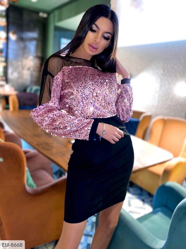 Сукня EU-8668 мод.821 Размеры: 42-44, 46-48 Цена 440 грн. Ткань: верх пайетка на бархте + сетка, низ креп-дайвинг Цвет: золото, Розовый Застегивается сзади на молнию