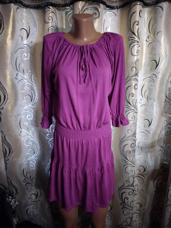 Жіноча сукня з віскози next Розмір - UK 14 EUR 42. Заміри: - напівобхват грудей 49-57 см, - напівобхват талії 36-53 см, - напівобхват стегон 58 см, - довжина рукава (від горловини) 50 см, - довжина 91 см. В поясі вшиті резинки. Склад: 100% віскоза. В ідеальному стані