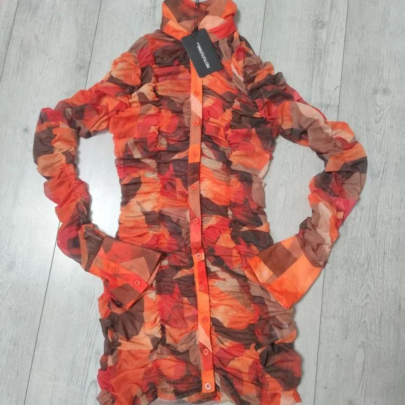 Яркое платье на длинный рукав, хорошо тянется Замеры: Плечи - 37см ПОГ - 41см Рукав - 69см Длина - 85см