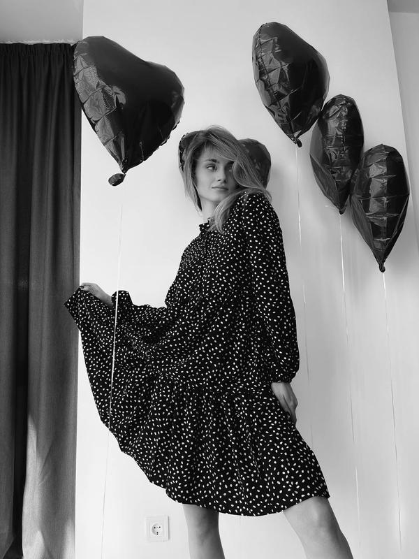 Чорно-біле плаття-трапеція з воланом 🔥 Арт 12906rm Про товар 🔽 Чорно-біле принтоване плаття-трапеція з довжиною до колін виконане з софта. Модель з нижніми воланами і довгими рукавами-ліхтариками. Виріб із закритою горловиною оснащено невеликою планкою на ґудзиках. Тканина : Софт 🇹🇷 Розміри: S, M, L, Xl Колір : Чорно-біле Ціна : 640 грн Відправки кожного дня!!!