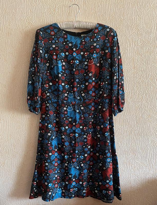 Мини платье, из 100% вискозы на подкладке также из вискозы, размер 10 на этикетке, может подойти и на 8, сзади на замке, состояние идеальное Пог 46, пот 37, пост 50, длина 88