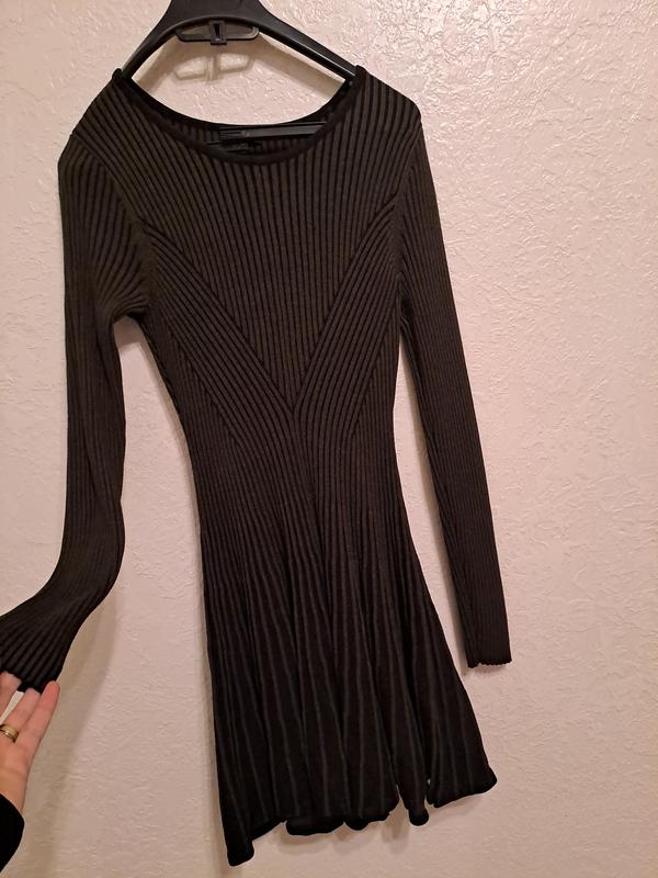 Ідеально однаково сяде на 34, 36 і маленьку м) Дуже хороший стан. Класно тримає форму. Оригінальний поділ - трохи клеш. Плаття бомба