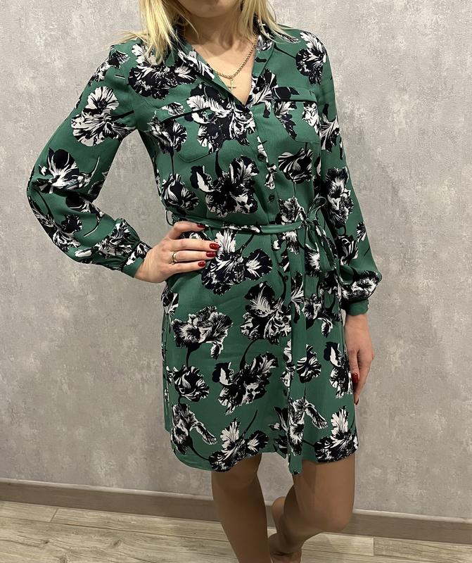 Очень стильное платье рубашка в цветы, зеленого цвета в цветы, идеальное состояние, одетая 1 раз. На бирке xs подойдет на размер S. Мой рост на фото 168 см.