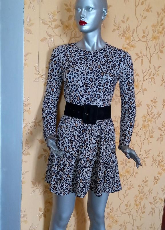 Шикарное леопардовое платье в рубчик от Zara. Состояние отличное. Местами могут встретится по 1-2 катышки . В носке не заметно. Пояс в комплект не входит . Размер указан S. Длинна -84 см Полу объем груди -42-50 см Полу объем бедер - 55 см