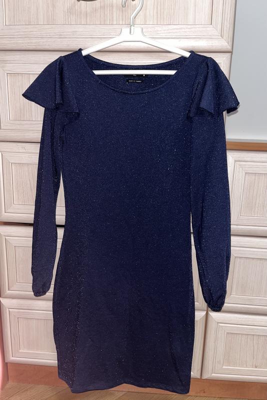 Платье темно-синее с блестками Reserved, материал вискоза + полиэстер