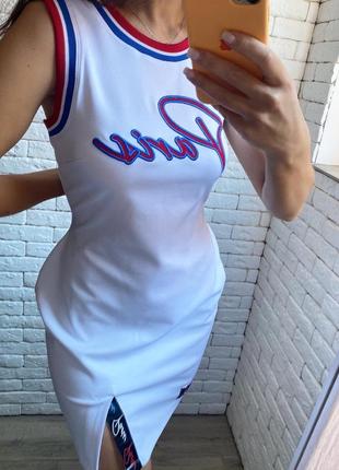 Женское платье, искаженный фасон, спортивное, дополненное манжетами из резинки, спереди надпись, с разрезом Больше фото и видео в инстаграм,станное фото