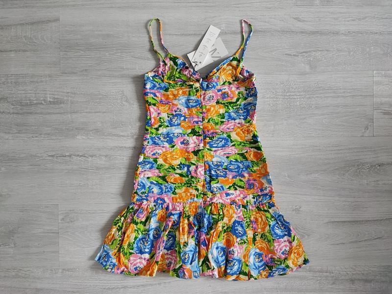 Летнее платье ZARA в цветочный принт Размер указанного XS Виготовлено в Марокко Имеет подклад Состав ткани: 100% вискоза, 100% полиэстер, 100% вискоза Шлейки регулируются Сзади застегивается на замок Замеры: ПолуОбхват подмышками - 35 см ПолуОбхват в районе груди - 34 см ПолуОбхват в районе талии - 32 см ПолуОбхват в районе бедер - 40 см Длина по центру спинки - 57 см Длина спереди по линии шлейки - +/- 78 см Длина из-подмышки - 60 см Состояние новое, с этикеткой