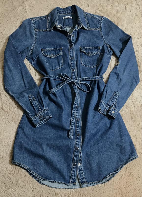 Джинсовое платье, актуального фасона, джинс плотное, в отличном состоянии, если есть вопросы, пишите - ответьте)
