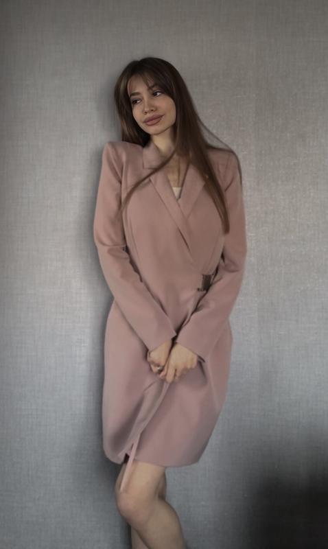 Сукня-піджак, легка та комфортна. Розмір M, але підійде на s, xs. Довжина від коміра 93 см. Застібається поясом. Колір пудровий. У ньому можна як на прогулянку, так і на якийсь захід 👌🏼