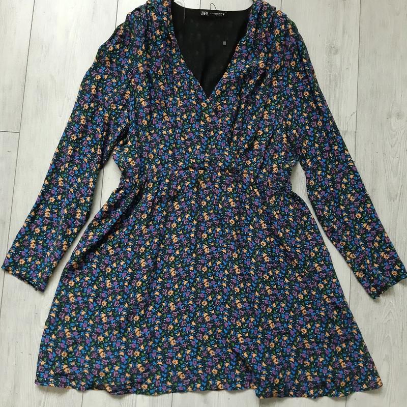Платье в цветы на длинный рукав с глубоким декольте с подкладкой. Замеры: ПОГ - 49см ПОТ - 42см на резинке Рукав - 64см Плечи - 45см Длина - 92см